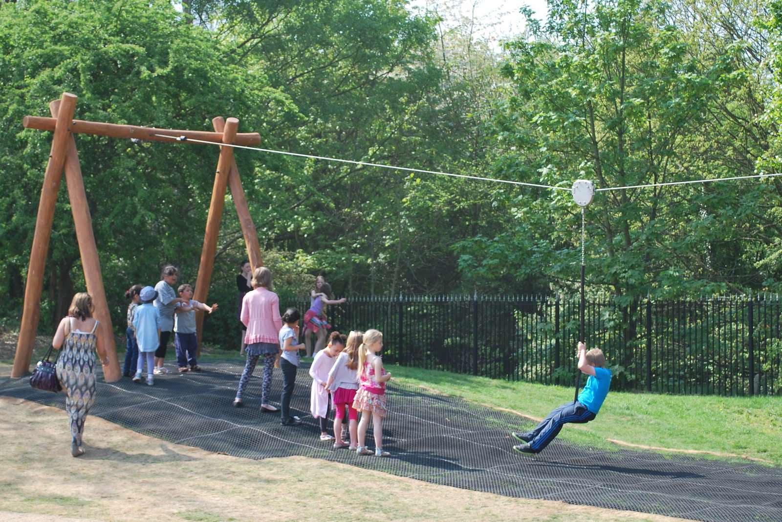 Taubane sett som monterfes på firkantet bjelke- eller rundstokk ramme. Barna utvikler styrke, koordinasjon og fysiske ferdigheter generelt. Passer for barn på flere alderstrinn, 5 - 99 år. Rundt gummisete eller stål håndgrep kan brukes. Tralle stopper å bevege seg uten vekt.
